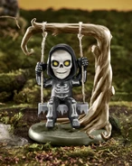 The Lil Skelly Bones Mini Collectible Statue is a figure sold online by Spirit Halloween since the 2023 Halloween season. It resembles a stylized statue of the animatronic Lil Skelly Bones, sitting on a swing that is hanging from a tree on a grassy base.