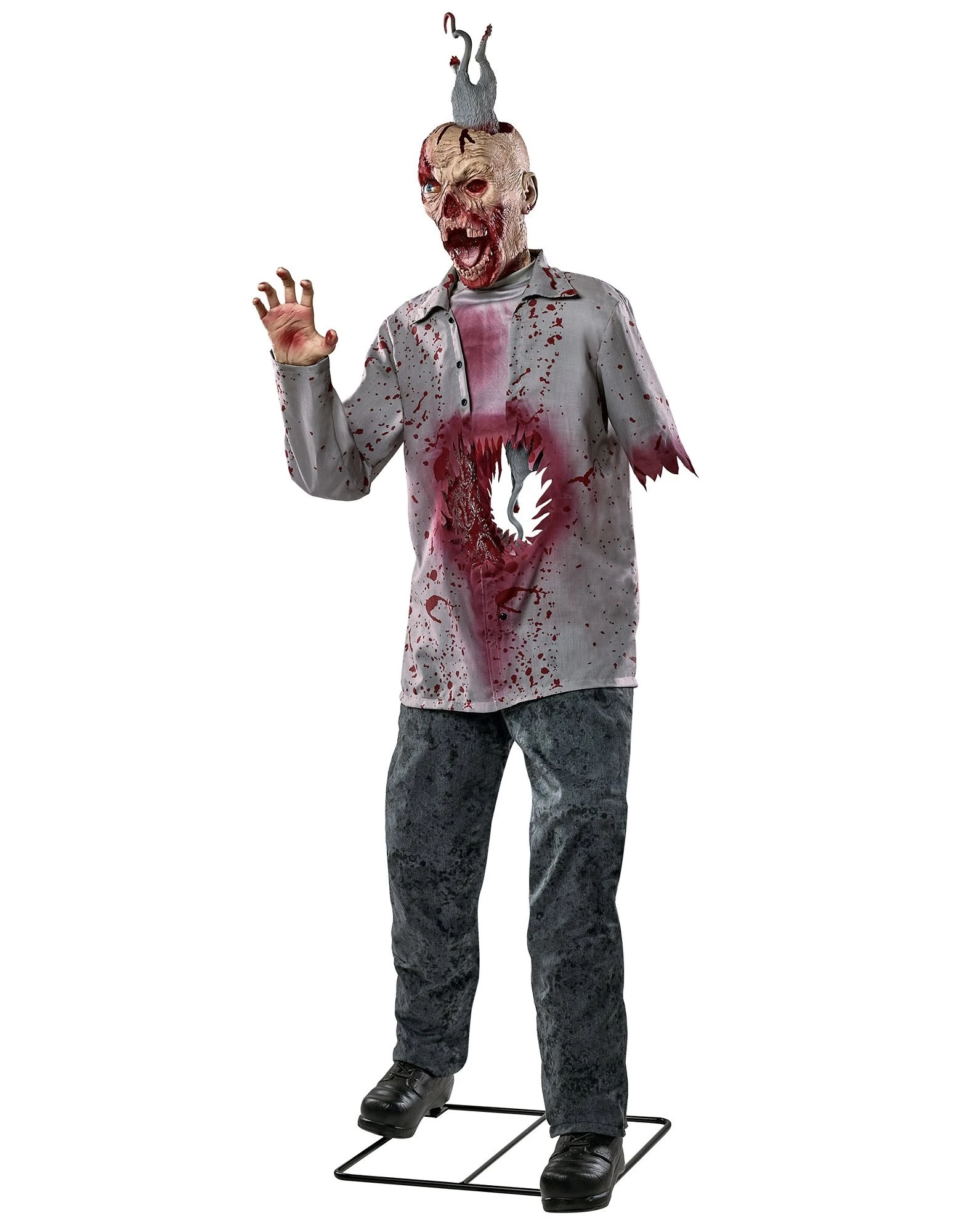 Better hope your guests don’t have a rat phobia once you put Rick Ratman on display! Standing at 6.3 feet tall, this rat-infested zombie animatronic will give your guests the total creeps once he comes to life with his side-to-side moving torso. Be warned, stand too close and you could become a part of the little critters’ next snack this Halloween."