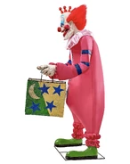 "If you happen to see any giant shadow puppets this Halloween look out, because that can only mean one thing. The Killer Klowns from Outer Space are back and ready to cause some wacky mayhem this holiday! Turn your Halloween display into a Killer Klowns circus this Halloween with this officially licensed Slim Animatronic. As one of the most prominent clowns from the film, Slim is not to be taken lightly. With his signature bright pink clown jumpsuit, head of orange hair with mini balloons, and sinister smile, Slim is always on the hunt for any helpless humans he can capture to feed his crew. Equipped with his green popcorn bag he has in the film, get too close, and you might just get shrunk and end up being the Killer Klowns next tasty snack!