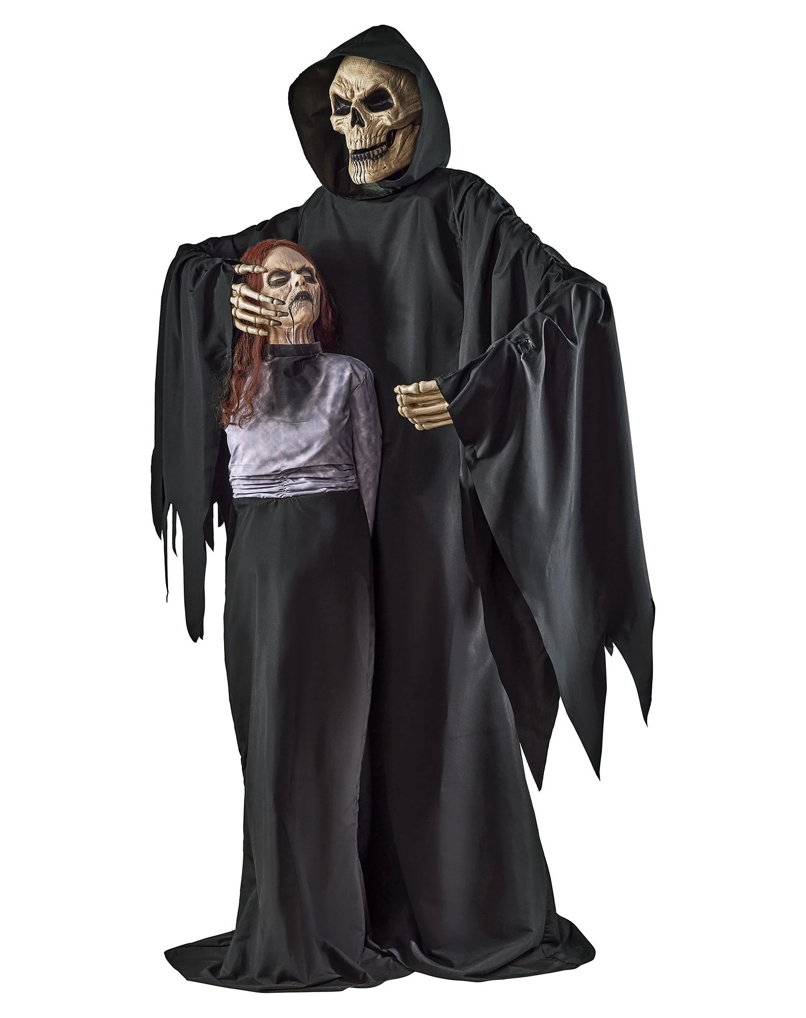 Love is what brought Ava to her downfall and now her partner The Black Heart is ready to seduce any unsuspecting guests to be his next victim as part of your Halloween display. Speaking menacing phrases from his moving mouth and opening his arms to reveal what remains of Ava inside his cloak, with this Black Heart Animatronic on display you’ll have one of the scariest setups in the neighborhood."